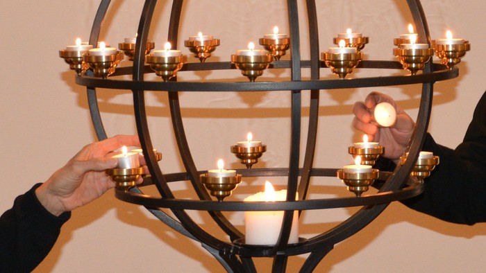 Derefter er der musik og lystænding og stilhed sammen, inden vi slutter med Fadervor og velsignelse.